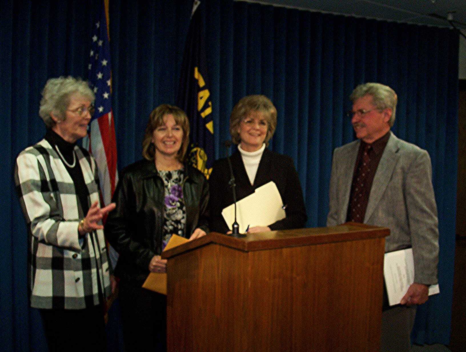 Barbara Stoeffler (left), founder of the Lane County chapter of MADD, is joined by Crime Victims United members Janet Lovelace, Anne Pratt and Bruce Pratt at a press conference in the Capitol.