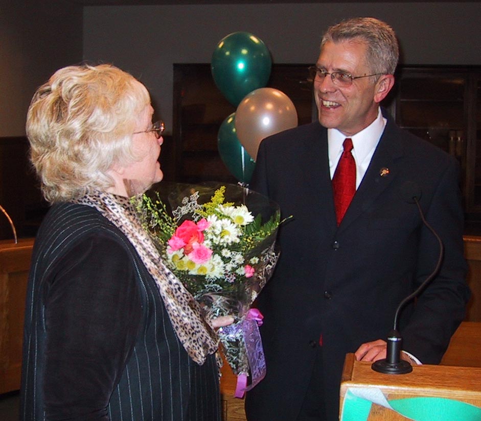 Dee Dee Kouns and Representative Krummel during the ceremony in Hearing Room 50.